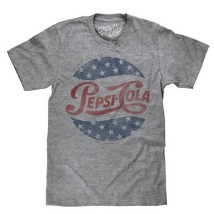 • YOUR NEW FAVORITE PEPSI T-SHIRT: Kick back and enjoy the nostalgia of the retro 70s Pepsi Cola logo with a patriotic twist - distressed printed on the softest Graphite Heather tee we could find.
