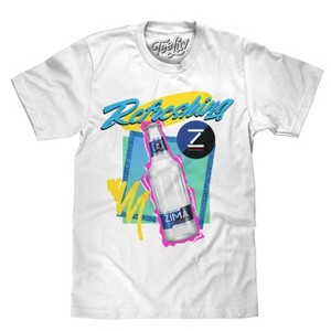 • WEAR ZOMETHING DIFFERENT: Celebrate the 90s in style with this throwback shirt featuring the famous Zima beverage bottle and "Refreshing" slogan against a bold neon-inspired graphic background - printed on the softest white cotton tee we could find.