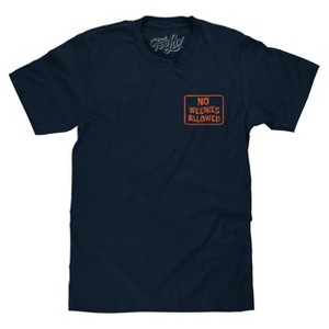 • Are You Tough Enough?: Show the world that you're a SpongeBob superfan with this funny cartoon shirt featuring the "No Weenies Allowed" text, and the infamous Salty Spitoon and "How Tough Are Ya?" phrase - distressed and printed on the left chest and back of the softest navy blue cotton tee we could find.