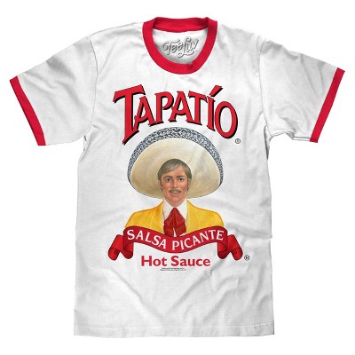 • Muy Salsa: It's time to bring the heat! Spice up your casual wardrobe with this graphic tee featuring the Tapatio Salsa Picante charro logo - printed on the softest white and red cotton ringer t-shirt we could find.