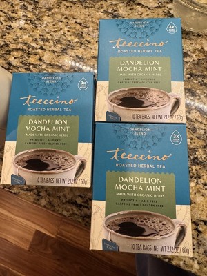 Teeccino Dandelion Mocha Mint Tea - Caffeine Free, Roasted Herbal Tea with Prebiotics, 3x More Herbs than Regular Tea Bags, Gluten Free - 25 Tea Bags