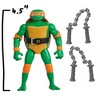 - 4.5" Head Droppin' Michelangelo is authentically sculpted and decorated to match his animated character in the Tales of the Teenage Mutant Ninja Turtles TV show.