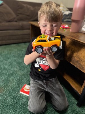 [This review was collected as part of a promotion.] This toy is perfect for my baby, since sometimes he likes to bump his cars and when he bumps, the top parts fly off and that makes him laugh... The packaging is very nice, I liked it a lot.