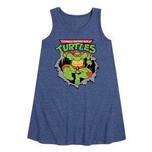 Girls' - Teenage Mutant Ninja Turtles - Raphael Breaking Through Shirt Graphic Sleeveless Aline Dress - 1 of 4