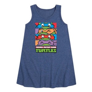 Girls' - Teenage Mutant Ninja Turtles - Stacked Faces Graphic Sleeveless Aline Dress - 1 of 3