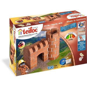 Barricade the gates! The Castle is under attack! A great addition to any Teifoc set, this Castle Set 4070 from the product line "Kids" incorporates real reusable miniature terracotta bricks for building exciting and marvelous structures from over 100 parts! It includes a small trowel, mixing bowl, and plenty of Teifoc mortar to build again. Made of corn based extract, our mortar is natural and safe if consumed. Teifoc is always fun and encourages a hands-on understanding of working materials. Simply soak your structure in water, allow the bricks dry, and start again - it’s as easy as that! Teifoc is designed, engineered, and manufactured by Eitech in Germany.