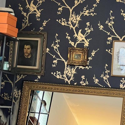 [This review was collected as part of a promotion.] Revamped the bar and wow! It has an elegant vibe that pops and can’t quit looking at it. I have a four different light changing bulb inside the cabinet bar space and it reflects off the metallic. Also painted the small ceiling metallic gold to match the bird design in the wallpaper. Fun!