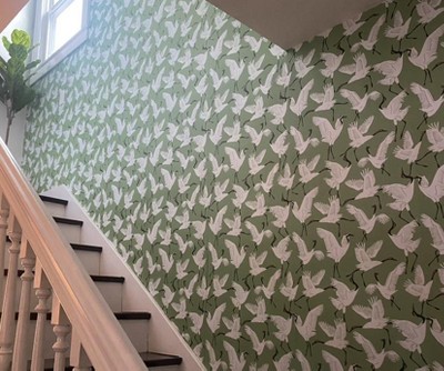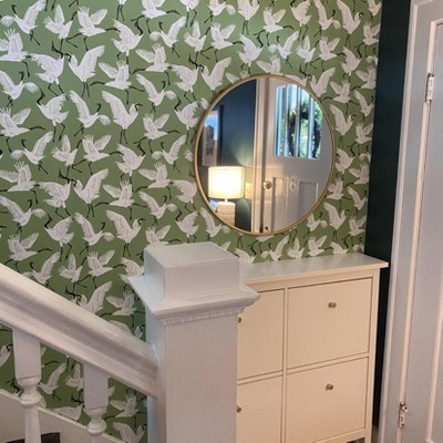 Tempaper and Co. 28 sq ft Family of Cranes by Novogratz Peel and Stick Wallpaper Green and Black