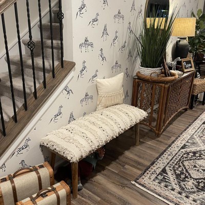This isn’t the easiest peel and stick wallpaper I’ve worked with but it still ended up beautiful! There’s a tiny piece of the zebra tail printed on the wallpaper (who the heck did that, change it asap) that’s a pain in the butt. After cursing for 30 minutes I decided to overlap my wallpaper pieces to cover that part of the tail (less than 1inch overlap needed) and it was smooth from there. If placed on top of itself, it will pull up the last piece of wallpaper so beware!