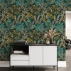A full roll of this product is 20.5 inches wide and 396 inches long. A full roll can cover up to 56 square feet depending on the design match and pattern repeat. A sample of this product is 8 inches by 11 inches. An exotic tropical leaf overlay print with multicolor tones. Versatile and durable, this product is perfect for high traffic areas such as halls stairs and landing. Its easy to hang and remove thanks to our special non woven backing paper meaning you simply paste the wall and hang direct from the roll. Its also fully strippable, so removing the product from the wall is done in minutes! Straight match with a 20.87 inch pattern repeat.