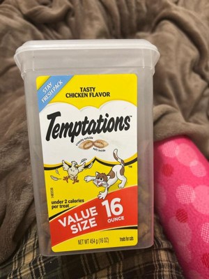 - 30 oz. Tub: Contains one (1) 30 oz. tub of Temptations Classic Cat Treats Tasty Chicken Flavor.