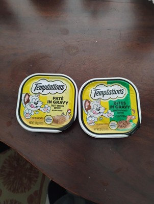 I found the. Temptations wet food in both pate and bites and I bought both varieties. My 17 year old cat Bubsey is very picky and she doesn't usually like pate, however, this she loves! Every morning my cat wakes me up early to feed her Temptations pate or bites. She meows and purrs so excitedly to eat her yummy wet food. I can't tell you how happy this makes me to see my cat truly enjoy her wet food. And the price is great too!