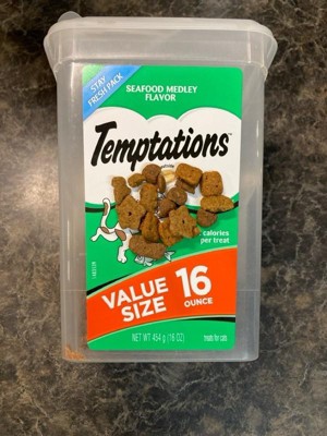 - 6.3 oz. Pouch: Contains one (1) 6.3 oz. pouch of Temptations Classic Cat Treats Seafood Medley Flavor.