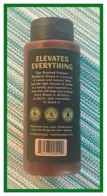 Smokey Poblano flavor is very pronounced in sauce. After taste picks up on the apple cider vinegar and tomatoes. Texture is not as smooth as your regular bbq sauce. Has more of a tomato base. Could benefit with adding a little more honey flavor.