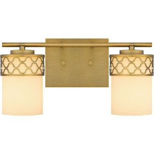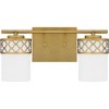 Add a touch of modern luxury to your bathroom with Tenley. The opal etched glass shades are wrapped in a delicate geometric pattern, inspired by the cool curving lines of Moroccan architecture. An aged brass finish adds sophistication and shine, making Tenley bath lights the perfect statement over any vanity.