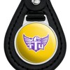 - QUALITY MATERIAL: Our durable round keychain is crafted from leather with a glossy resin-topped emblem featured design shown on one side. Approximately 1.5" (3.8cm) x 2.5" (6.4cm) in overall size, emblem is 1" (2.5cm)..