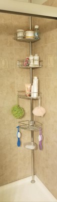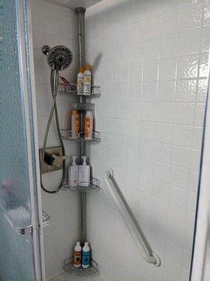 Corner Tension Pole Shower Caddy Stainless Steel - Zenna Home: Rustproof Metal Bath Organizer, 4 Shelves, Adjusts 5' to 9'