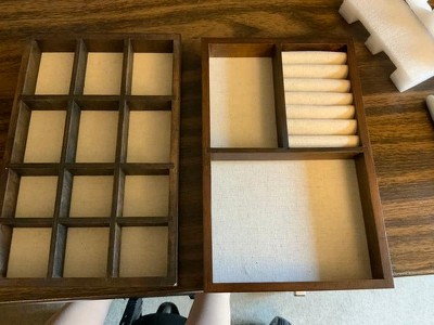 - WOOD STACKING JEWLERY TRAYS: Terrace’s jewelry trays slide out for easy access to accessories and it features specially designed linen dividers for organizing accessories, a simple handle makes it easy to transport.