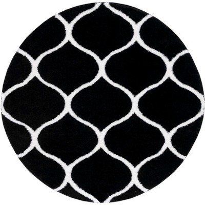 Terrace TER802 Power Loomed UV Resistant Stain Resistant Non-Shedding Indoor/Outdoor Area Rug - Black/White - 6'7" Round - Safavieh