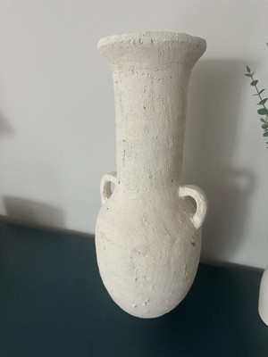 Terracotta Pottery Vase - Amphora Style Decorative Flower Vase for Home, Office & Living Room - Handcrafted Rustic Design - 19" White