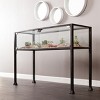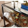 Bring gardening fun into your home with this innovative display console table. Black frame with silver distressing and glass panels creates a universal look that complements many styles and decor. This terrarium style design is perfect for indoor gardens or displaying special mementos. Best for lowlight houseplants and succulents, this sleek console table is a great conversation starter that showcases a world of your own. This item is not suitable for live animals. Do not use the glass display as an animal habitat or enclosure.