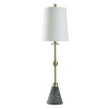 The Tazzo Gold Table Lamp by StyleCraft features a slim gold bar that stands on a trendy concrete terrazzo base. This accent table lamp is perfectly suited to a modern living room, bedroom, or entryway. This piece exemplifies superior product design and great styling at an unbeatable price. It will pair well with nautical and eccentric styling and is sure to be a conversation piece. Regardless if you put it in the bedroom or family room, this lamp stands out. Suitable for residential use in a dry location.