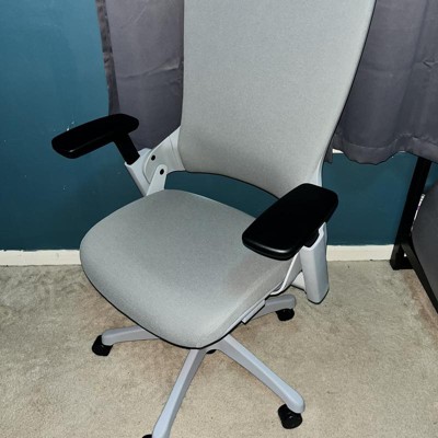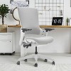 Cool and contemporary in white and light gray, this impressive adjustable mesh office chair is just the upgrade your office has been seeking. It delivers incredible support, metal frame, and comfort with a host of adjustment points to create a seat that cradles your body. Armrests are height adjustable and plush foam cushions ensure all-day productivity. A wheeled base means this chair moves easily within your office for optimal convenience.
