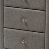 The Tessa 3-Drawer nightstand exemplifies how minimalism can be chic and sophisticated. The modern and contemporary-inspired design emphasizes clean lines and smooth surfaces. The Tessa features a foam-padded plywood and hardwood frame with all-over fabric upholstery. The chrome-finished drawer knobs provide a contrast to the upholstery as an additional style element. The Tessa also features three pull-out drawers on gliders, giving you more storage options at your bedside. The simplistic design makes this nightstand easy to coordinate with the existing decor in your bed room or guest room. Made in Malaysia, the Tessa requires assembly. Dimensions: 26.38" High x 18.5" Wide x 16.34" Deep; Drawers: 5.71" High x 12.83" Wide x 12.83" Deep