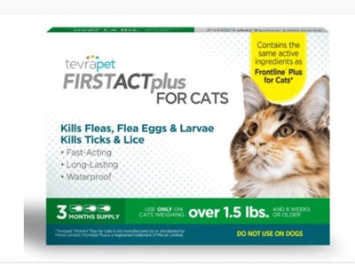 TevraPet FirstAct Plus Flea and Tick Prevention for Cats, 3 Doses, Same Active Ingredients as Frontline Plus Flea Treatment for Cats