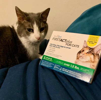 [This review was collected as part of a promotion.] TevraPet FirstAct Plus Flea & Tick Prevention for Cats is a handful to say, but is extraordinarily easy and quick to apply to your pets’ fur. It doesn’t have much of a scent at all, and reduces fleas in a matter of minutes after application. It is definitely worth the price, as it seems to get the job done in one use.