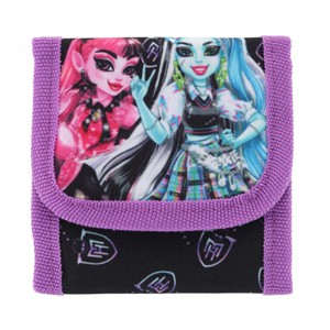 The and ghoulish gals of Monster High adorn this super cool and freakishly fabulous wallet. As Draculaura would say, awesome, right? Great coloring and ghoulishly cool details make this wallet a stand out. The hook and loop closure will keep your valuable safe and secure. The interior features a full-length bill slot, a zippered coin pocket, and 1 slip pocket. Your favorite characters from Monster High, Frankie Stein and Draculaura will stand guard and keep your valuables safe. Measures 4 x 4 x .75 inches when closed, measures 11 x 3.75 x .05 inches when open. Made of 100% Polyester