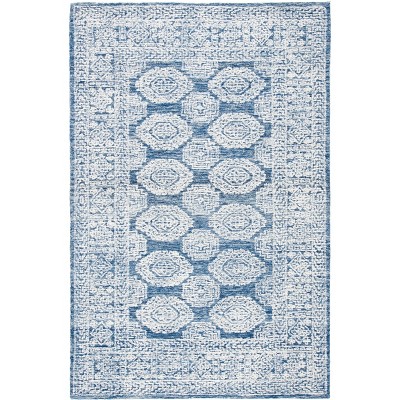 Transform your living space with this stunning area rug, designed to complement any room with its dark blue hue and contemporary style. Measuring 5 feet by 8 feet, this medium rectangle rug is thoughtfully crafted in India using the hand tufted technique. Made from a blend of 80 percent wool and 20 percent cotton, this rug offers a natural touch underfoot.