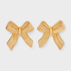 A: The earrings feature a textured bow design that adds a stylish touch to any outfit.