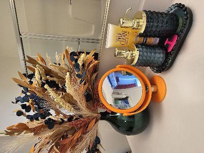 This is so pretty in my guest bath. I paired it with the matching tray. The gorgeous blue makes me smile every time I see it! Boho beautiful!