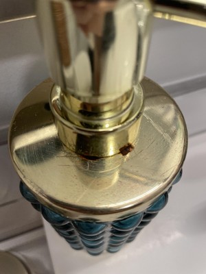 I love this soap pump for my bathroom. I have a pedestal sink and there is not a lot of room around the sink and this fits perfectly and it's beautiful. I love the raised bubbles, and the blue with the gold!