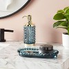 Add a touch of class to your bathroom with this Textured Glass Tray from Threshold™. Made of blue glass, this oblong tray is ideal for keeping makeup brushes, skin creams, lip balms, and other essentials. It features a beaded design on the rim for stylish visual appeal.