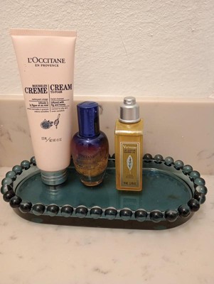 Beautiful textured glass tray can be used basically anywhere and for a multitude of things. I chose to display it in my bathroom and use it to hold my hand soap dispenser and cream. Would also be great for keys in entryway or jewelry in bedroom.