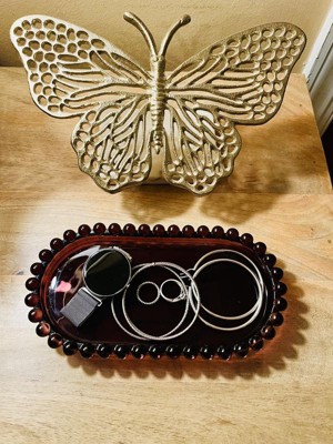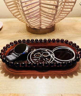 This is a beautiful tray from the Threshold line and is small enough to fit in almost any space. Designed with a mulberry colored glass with a beaded trim around the edges. Perfect for holding jewelry, makeup, or any of your other essentials. I love that matching pieces are also available. I love this piece!