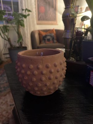 [This review was collected as part of a promotion.] Such a cute planter! The terracotta bubble texture is even nicer in person and feels really well made. Perfect size for a small plant and adds a cozy, earthy touch to my space. I can’t wait to add a plant in this for spring!