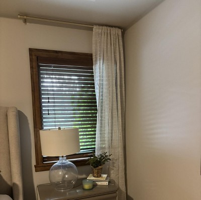 These were exactly what I was looking for when remodeling my living room. They are sheer so they don’t block out the much needed light. Love the little decorative pattern in these too. Very happy with them! Don’t make the mistake I did as they only come with ONE panel per pack (I should have looked more closely). So you need 2 packs for a single window!