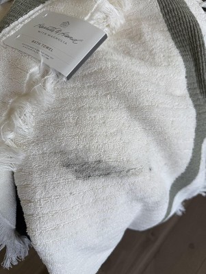 This towel is incredibly soft and feels like luxury. I love the size and how well it absorbs without leaving lints or particles on the body. I like the green border and fringes. It’s such a beautiful towel.