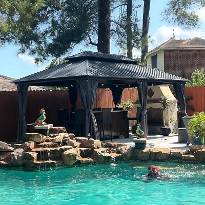 PURPLE LEAF 11' X 14' Permanent Hardtop Aluminum Frame Gazebo with Galvanized Steel Double Roof for Patio and Garden, Curtains and Netting Included