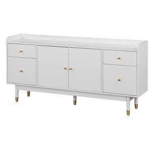 Lifestorey Thalia Mid Century Modern Buffet White: Storage, Gold Accents, 4 Drawers, Adjustable Shelf