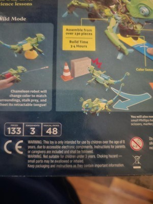 Building the chameleon was fun for my 11 year old son. He did need help with some steps, screwing on several pieces together. It took about 3 hours to build, in the end we could not get the chameleon to perform the given tasks (we need to disassemble it and make sure we put each piece correctly). Overall a great activity for my son.