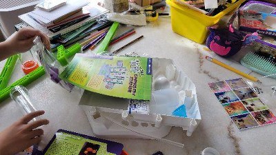 This playful introduction to the basics of chemistry includes approximately 20 experiments. The experiments are presented on printed cards that can be clipped onto the lab station for easy reference. Experiments include glowing slime, color-changing slime, fizzing reactions, oozing bubbles, rainbow in a test tube, chromatography, cabbage juice pH tests, solutions, filtering, crystals, fire extinguisher, and underwater volcano.