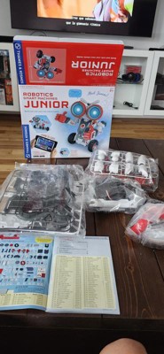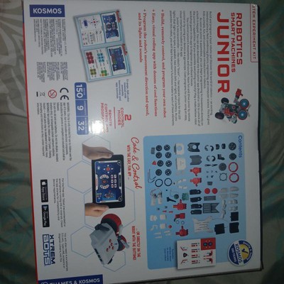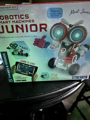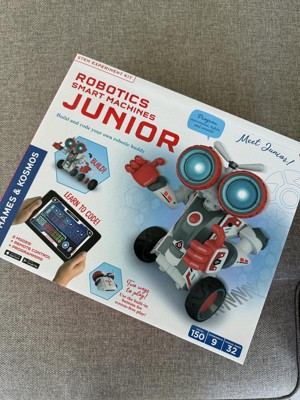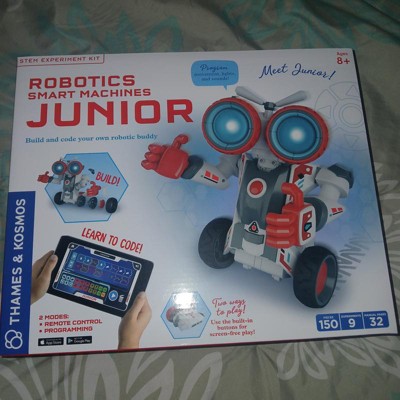 Thames & Kosmos Robotic Smart Machines Junior was a bit challenging to build, it has many pieces to assemble, but worthy, it has two modes to play with built-in buttons or with the app using controls and programming. This robot has sounds, lights and movements that make it so fun! My kids really enjoy it
