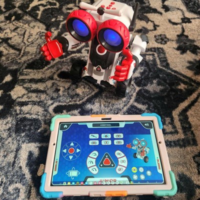 Build and program your own robotic pal with this simple, fun, and customizable introduction to robotics. Assemble the durable, plastic building pieces into a 9-inch tall bot, then pair it with the free app on your smart device to unlock all of Junior’s capabilities. You control Junior’s movements and sounds! Program its movements directly on a built-in keypad or use the easy, visual interface on the app. Drive it around by remote control or use your device as a gyroscope. Play a make-believe robot workshop game in the app to diagnose any onboard issues. Junior’s microcontroller (or “brain”) has separate inputs for the LED lights that light up its eyes, a speaker, two motors (left and right), and a battery. A full-color, 32-page step-by-step illustrated manual explains how Junior’s functions relate to each of these elements, walks kids through the construction process, and helps them make the most of the app’s features – all while teaching them about robotics in the real world. The app requires a tablet (recommended) or smartphone running iOS or Android. Please check the app stores for compatibility and device requirements.
