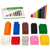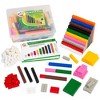 A set of 250 colorful plastic rods of varying lengths. Used to develop skills in counting, sorting, sequencing, graphing, pattern recognition, measuring, and basic mathematical operations. Durable plastic for long-term use and easy cleaning. Includes 100 1x1x1-cm white cubes, 30 2x1x1-cm red rods, 20 3x1x1-cm gray rods, 20 4x1x1-cm pink rods, 20 5x1x1-cm yellow rods, 15 6x1x1-cm green rods, 12 7x1x1-cm black rods, 12 8x1x1-cm brown rods, 11 9x1x1-cm blue rods, 10 10x1x1-cm orange rods, 5 activity cards, plastic storage box.