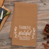 Elevate your home décor this fall with the "Thankful Grateful Blessed" Hand Towel, a perfect blend of style and functionality. Crafted from a durable 70% polyester and 30% cotton blend, this towel boasts a unique waffle weave texture that enhances absorbency while adding a touch of elegance. The heartwarming message is beautifully printed on the front, contrasting with the pristine white reverse side. Measuring approximately 20" W x 30" L, this versatile towel comes with a convenient corner hang ribbon on the back for easy display. Its machine-washable design ensures easy care, although minimal shrinkage may occur. Crafted with care and imported, each towel is sold individually, making it a perfect personal touch to your kitchen or bathroom. Celebrate the season with gratitude and style—bring home this delightful hand towel today.