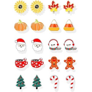 Thanksgiving & Fall Stud Earrings: Pumpkin, Maple Leaf, and Candy Corn Designs.